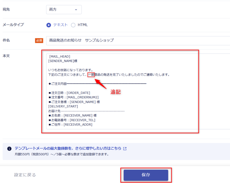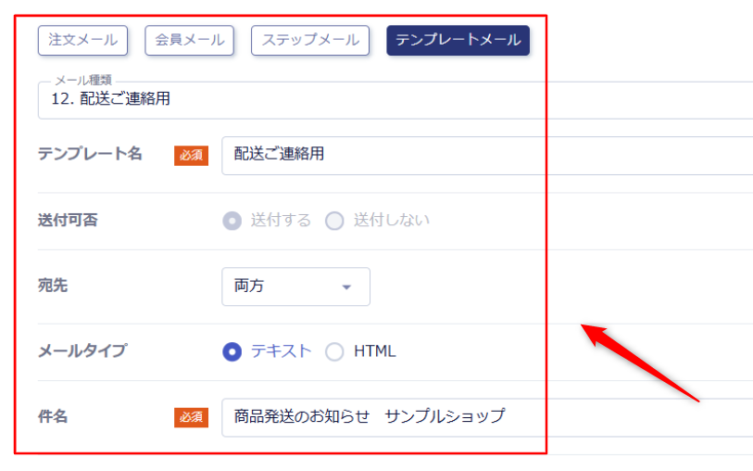作成方法は【その2】配送ご連絡用テンプレートメールの作成をご参考ください。