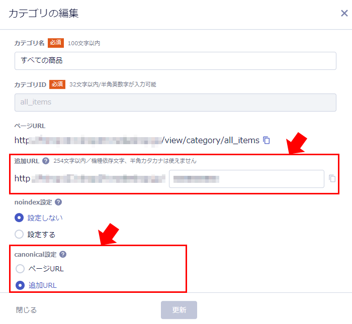 ・カテゴリ設定ページ内で追加URL・canonical・noindex設定